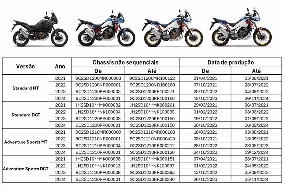 Recall Honda CRF 1100L Africa Twin ano modelo de 2021 a 2024